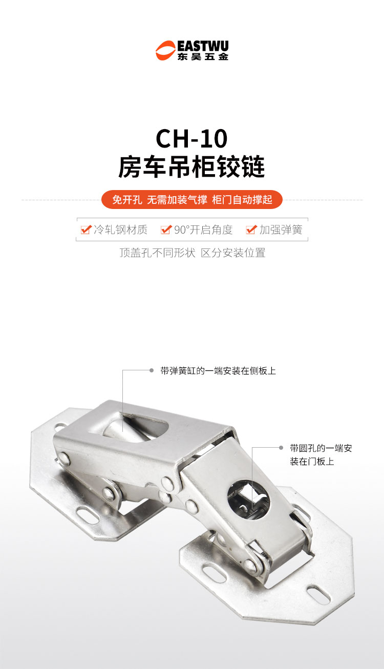 CH-10 东吴房车铰链 免开孔自举支撑吊柜铰链合页