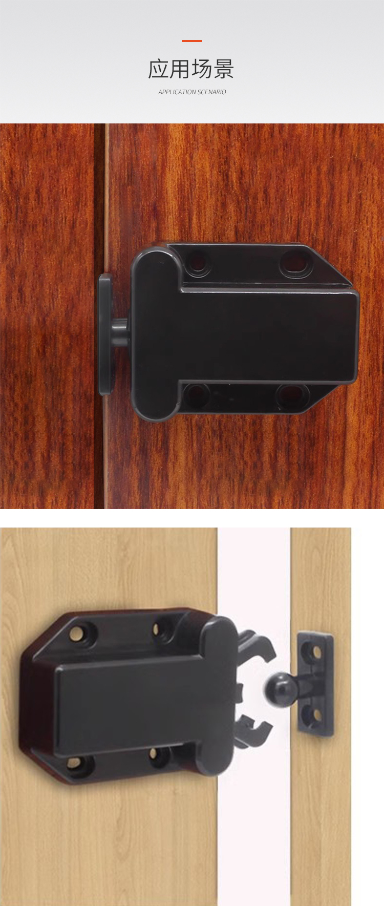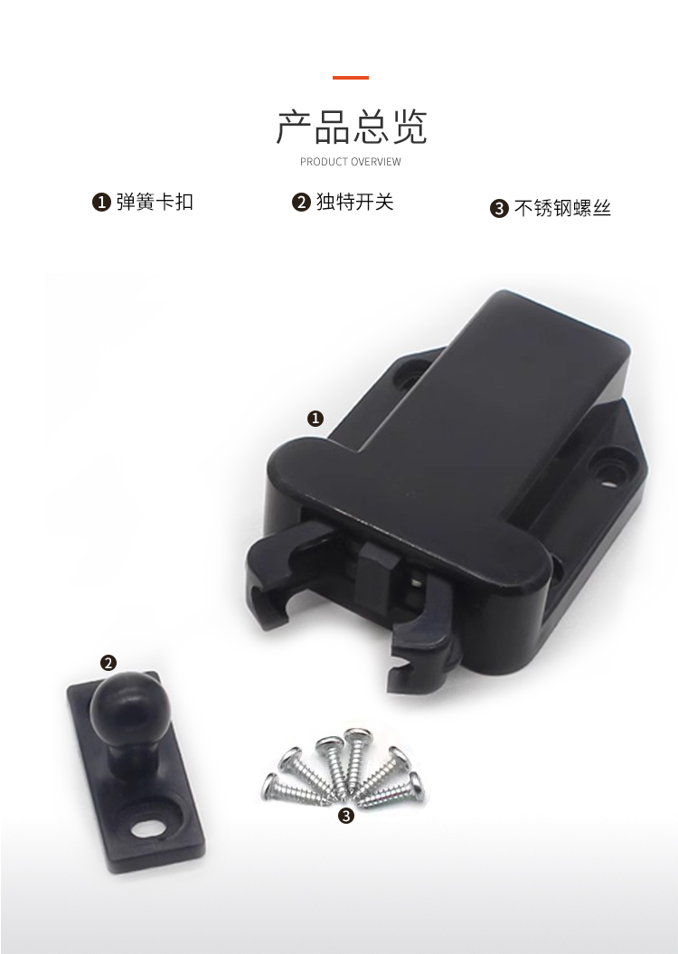 黑色塑料房车吊柜按弹门扣 尺寸55.5X43mm 适用门厚12-20mm