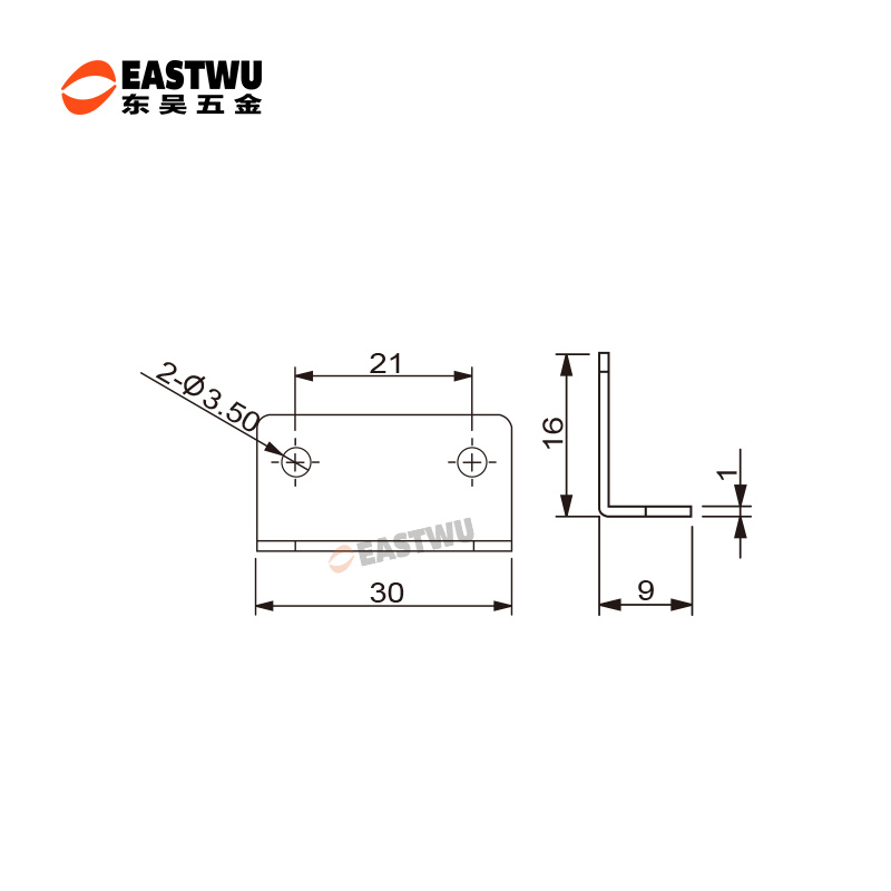 镍色铁金属挡片 防撞击 坚固耐用 尺寸30X16mm 孔距21mm