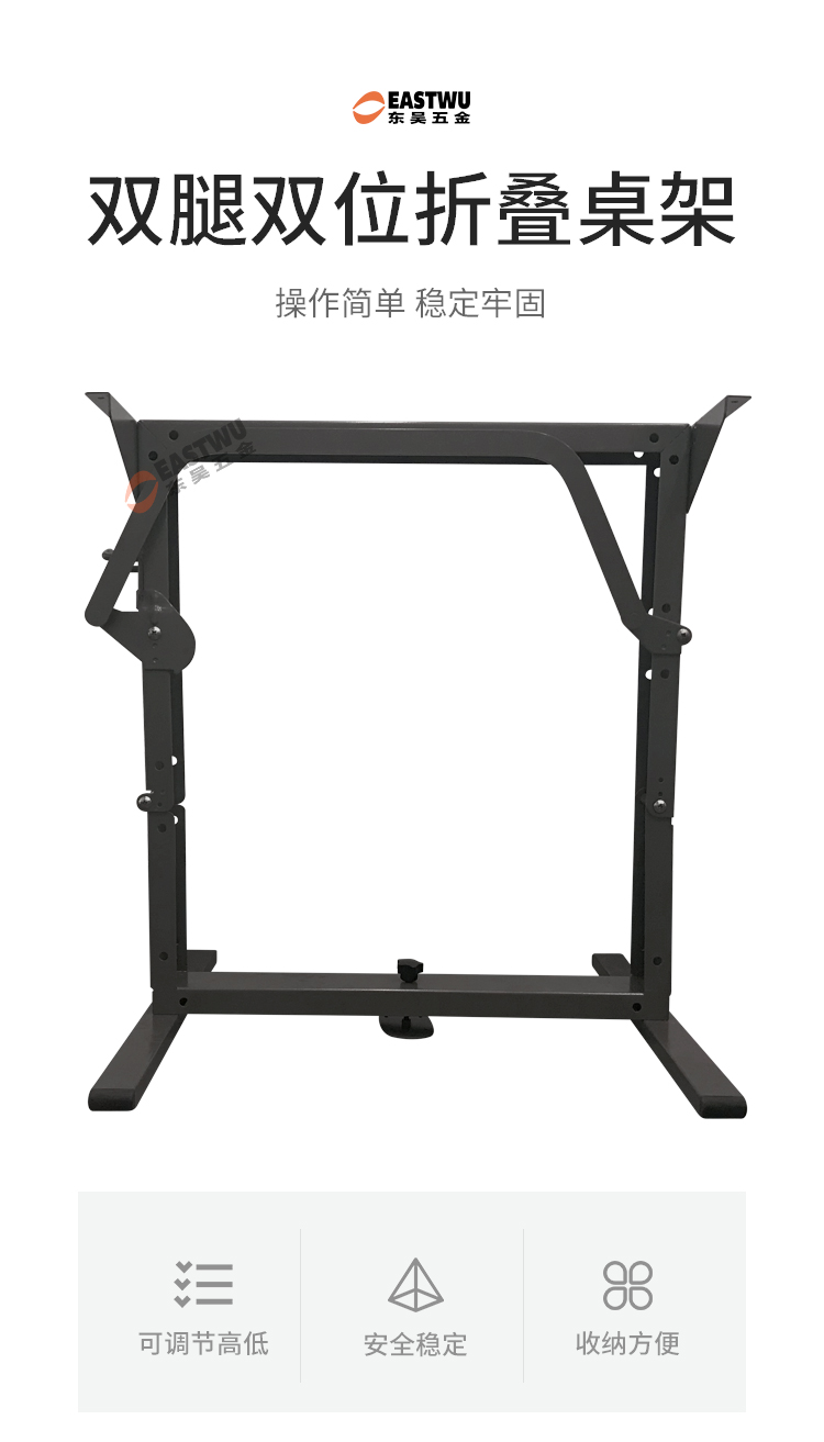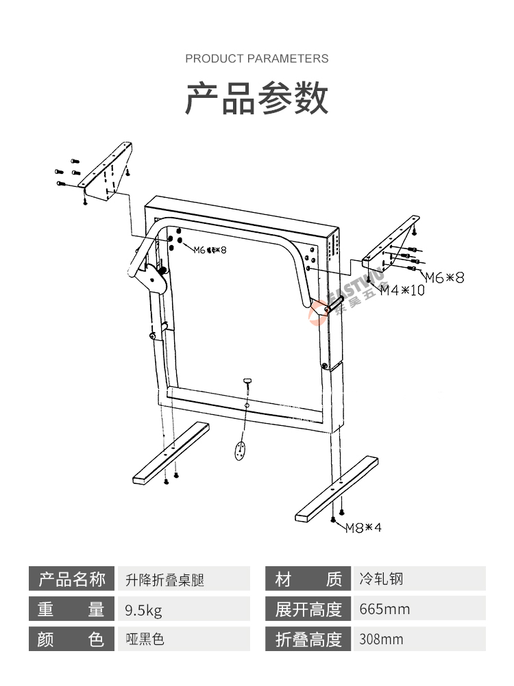 冷轧钢可调节升降桌腿 安全稳固 上升后当桌子使用,放下后当床铺支架 重量9.5kg 灰色 展开高度665mm 折叠高度308mm